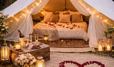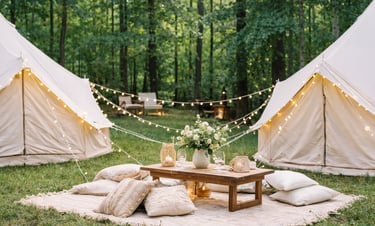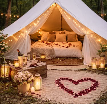 Select your site upgrades and enhance your stay with optional add-ons such as glamping upgrades, comfort bundles, games packages, dining setups, or celebration décor.