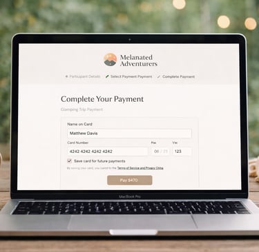 Individual Payments: Each participant pays for their own tent or shared space through a private payment link.
