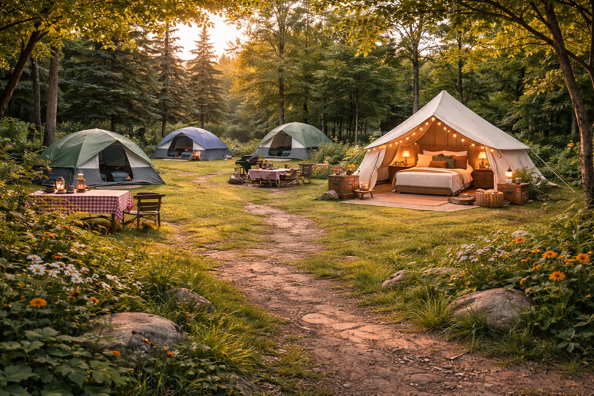 Whether you’re planning a casual getaway, a cozy glamping stay, or a signature outdoor experience, our tent setups are prepared with care, intention, and attention to detail. Explore each option, compare the features, and select the experience that feels right for you. No matter which you choose, you’ll arrive to a campsite that’s ready — so you can focus on relaxing, connecting, and enjoying the outdoors your way.