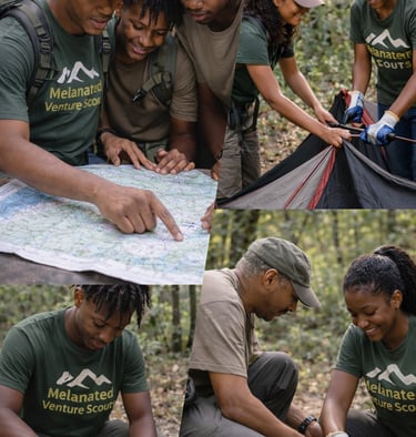 Melanated Venture Scouts is intentionally designed to introduce black and brown youth ages 13–21 to nature, leadership, and community in a way that feels safe, structured, and empowering. The program serves teens and young adults across this age range through developmentally appropriate activities that support growth, confidence, and connection. This page outlines how the program works, what youth will experience, and what parents and guardians can expect along the way.